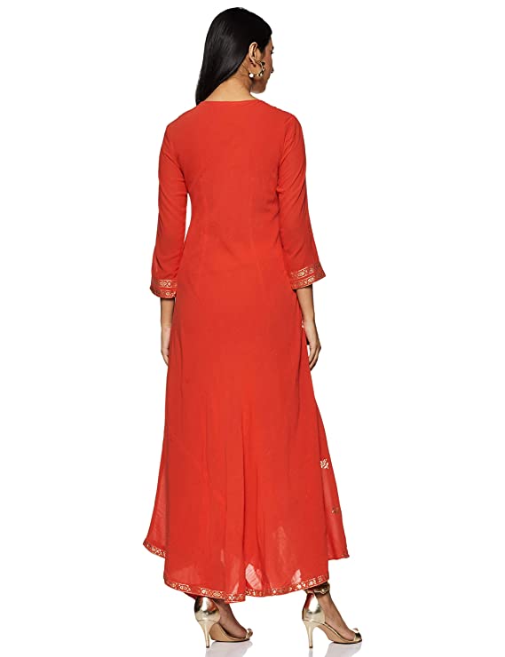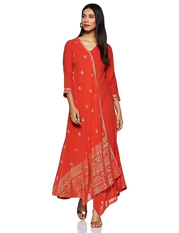 Hand wash; a very stylish dress cum kurta; it comes featuring v-neck and three-fourth sleeves; it has a very stylish front featuring cut and stylish fall in the centre which is further making an asymmetric hemline