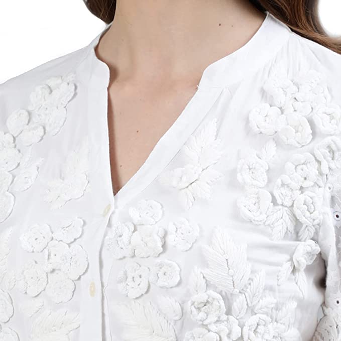Cotton White Schiffli Embroidered A-Line Dress Suitable For All Season Comfortable To Wear & Beautiful In Look, It Has Bell Sleeves & Mandarin Collar