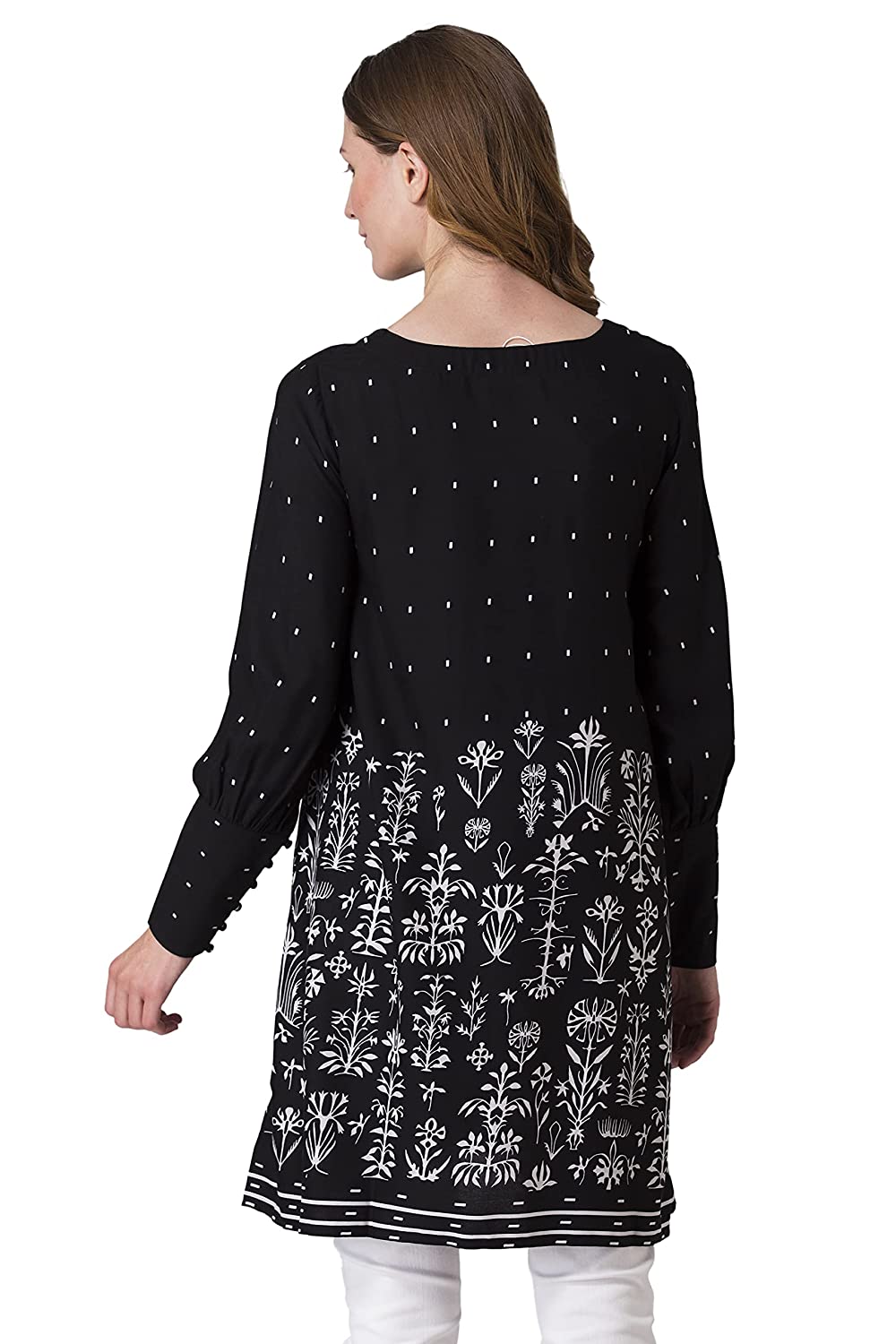 The Black Color tunic Mode by Blue Staple is refreshing to wear for the Winter.100% Viscose 30’s rayon, the piece is ultra-breathable and soft inside out. Its extreme lightweight nature makes it a comfort long-duration wear for the hot days. It is best paired with denim and bellies.